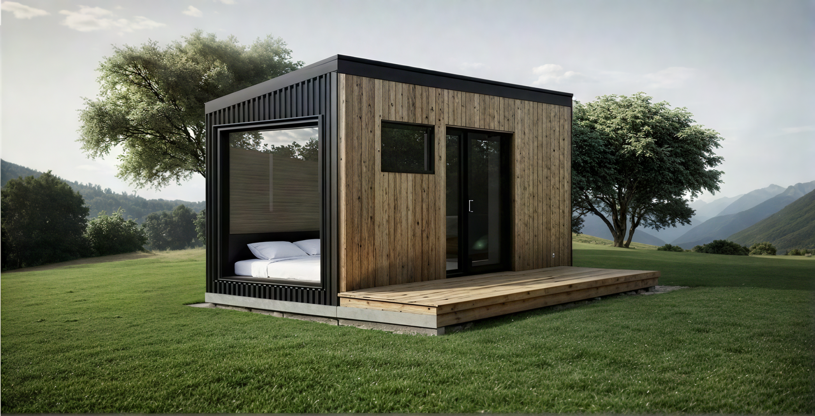 Цей компактний модульний будинок має площу 15 м² і ідеально підходить для відпочинку, роботи або короткотривалого проживання.